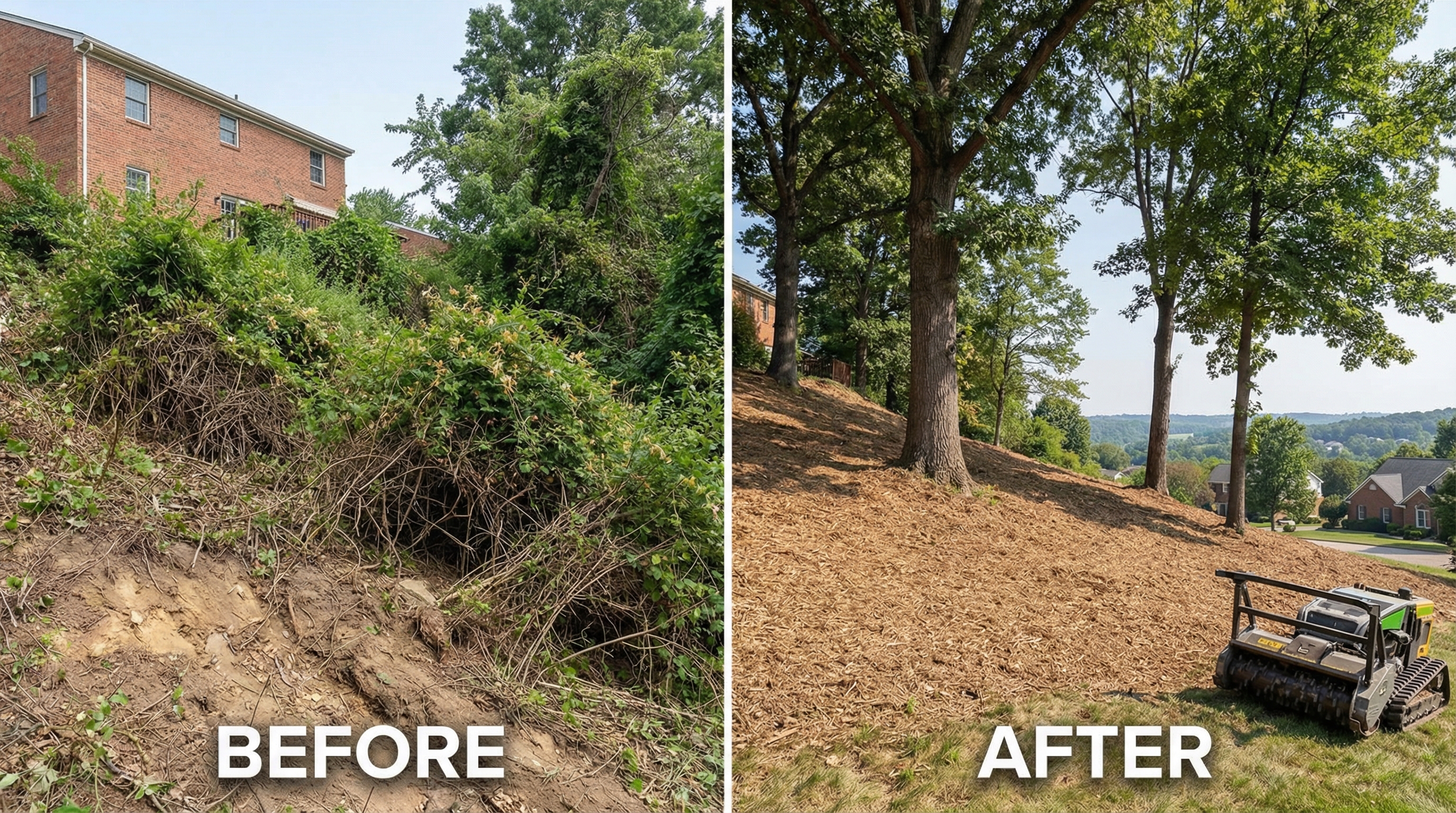 Hillside & Steep Terrain Mulching — Slopes Up to 55°